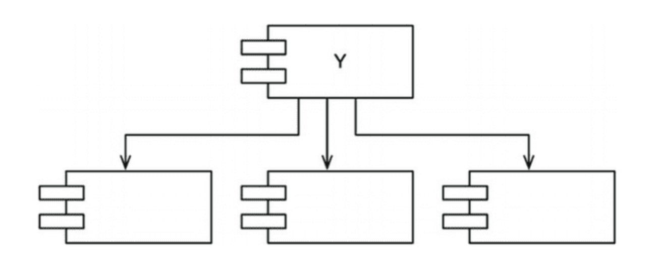 반대로, 위 사진은 Y가 여러 컴포넌트에 의존하고 있습니다. Y를 바꿀 수 있는 요소가 3가지나 있기 때문에 Y는 안정적인 컴포넌트가 아닙니다. 이 경우 Y는 의존적이라고 말할 수 있습니다.