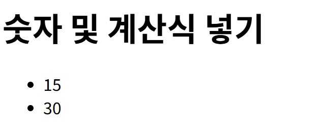 숫자를 대입할때도 마찬가지로 {}를 사용합니다. {}안에서 연산을 하게 되면, 연산이 완료된 값이 랜더링 됩니다.