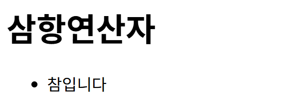 <li>{1 + 1 === 2 ? "참입니다" : "거짓입니다."}</li>