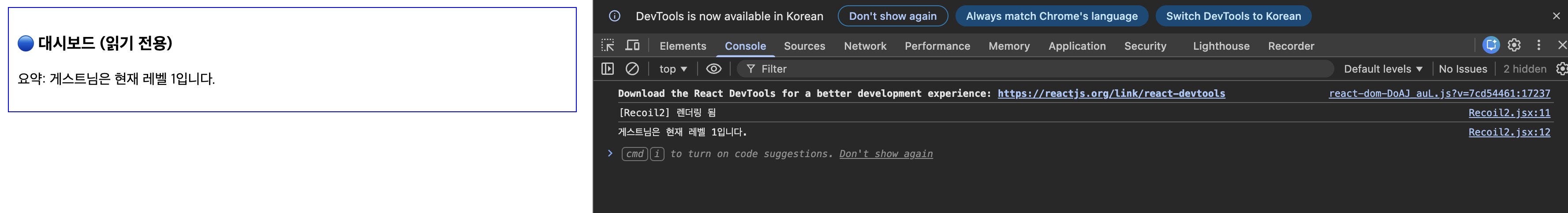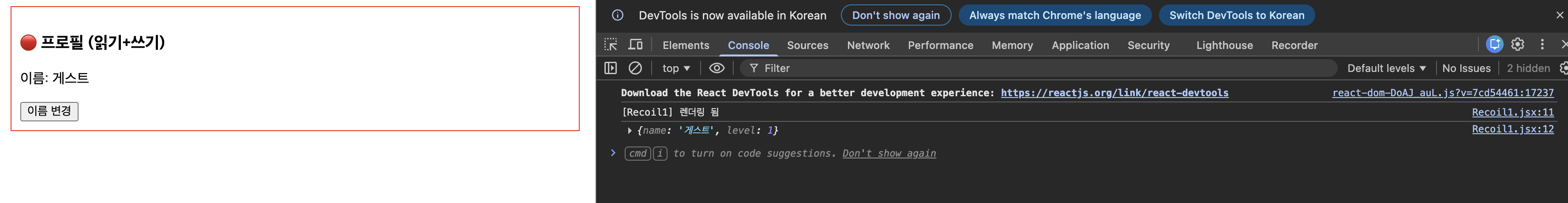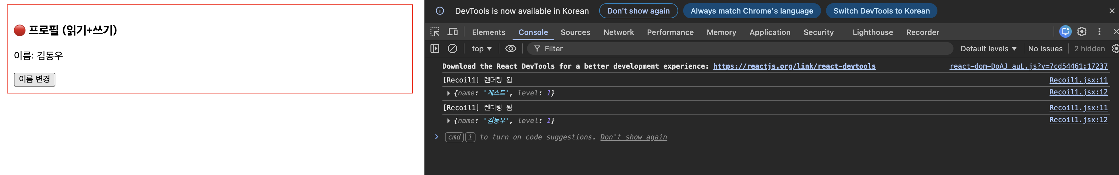 console.log("[Recoil2] 렌더링 됨");